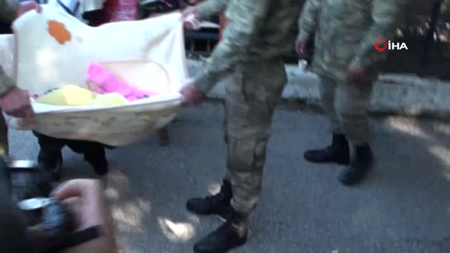 Öte yandan, tören alanına gelen ailelerden birinin ağlayan 8 aylık kızı İklim Demir’i, 2 asker battaniyeyle bir süre salladı. Bu durumu, görenlera tebüssüm ettirdi.